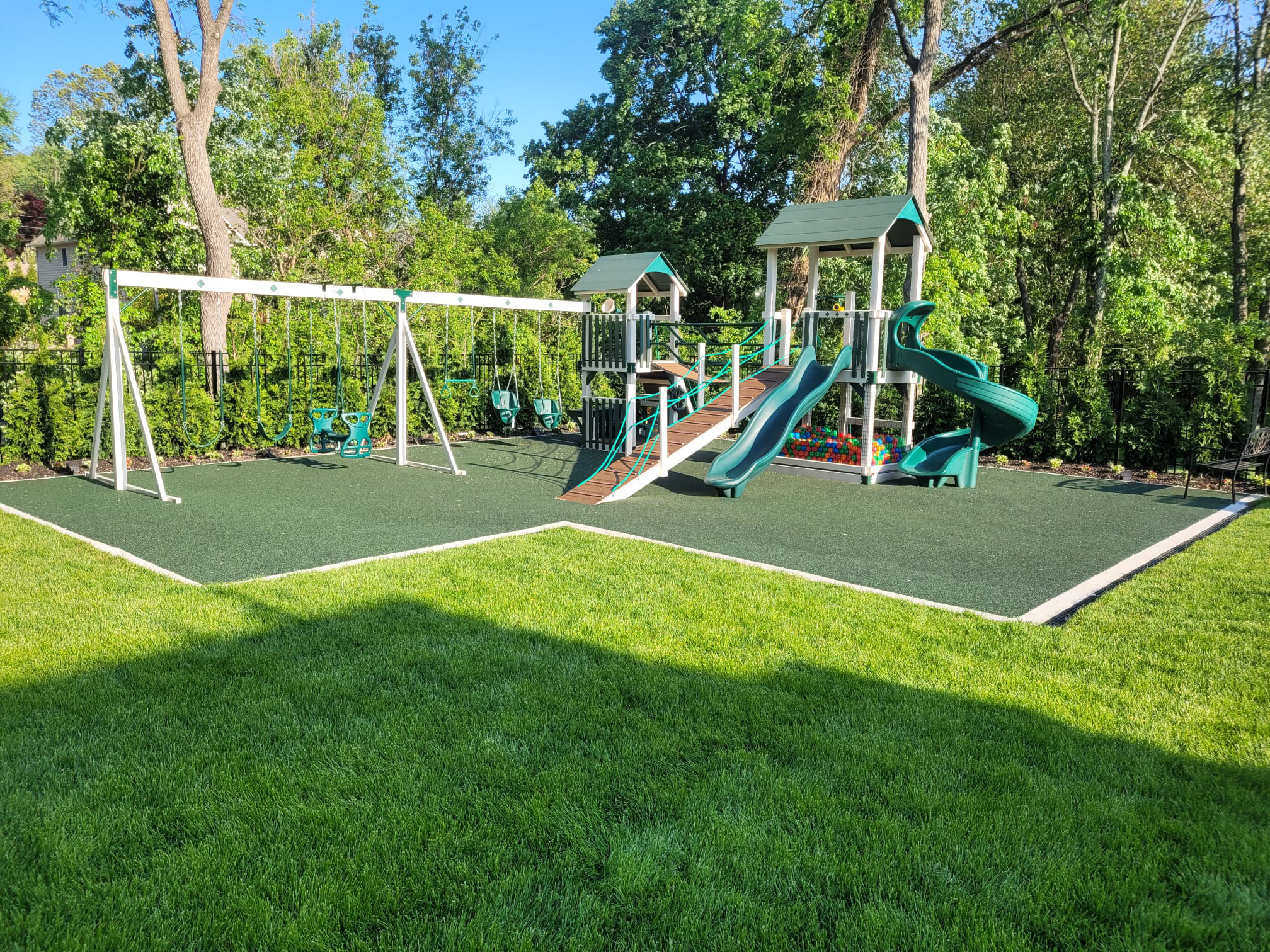 Artificial grass that provides a soft, natural look with added padding for safety and minimal upkeep.